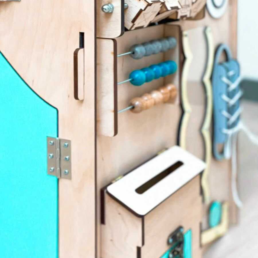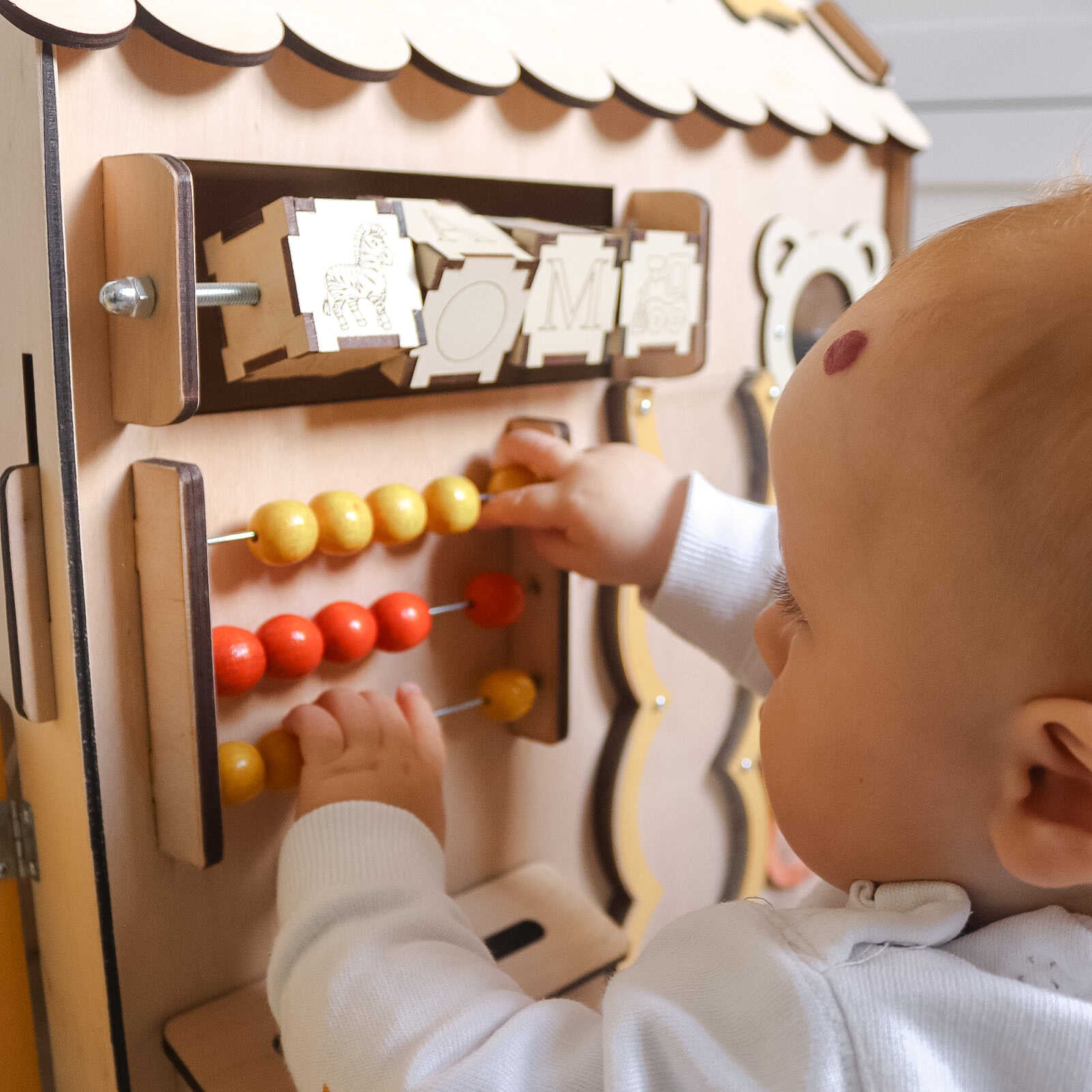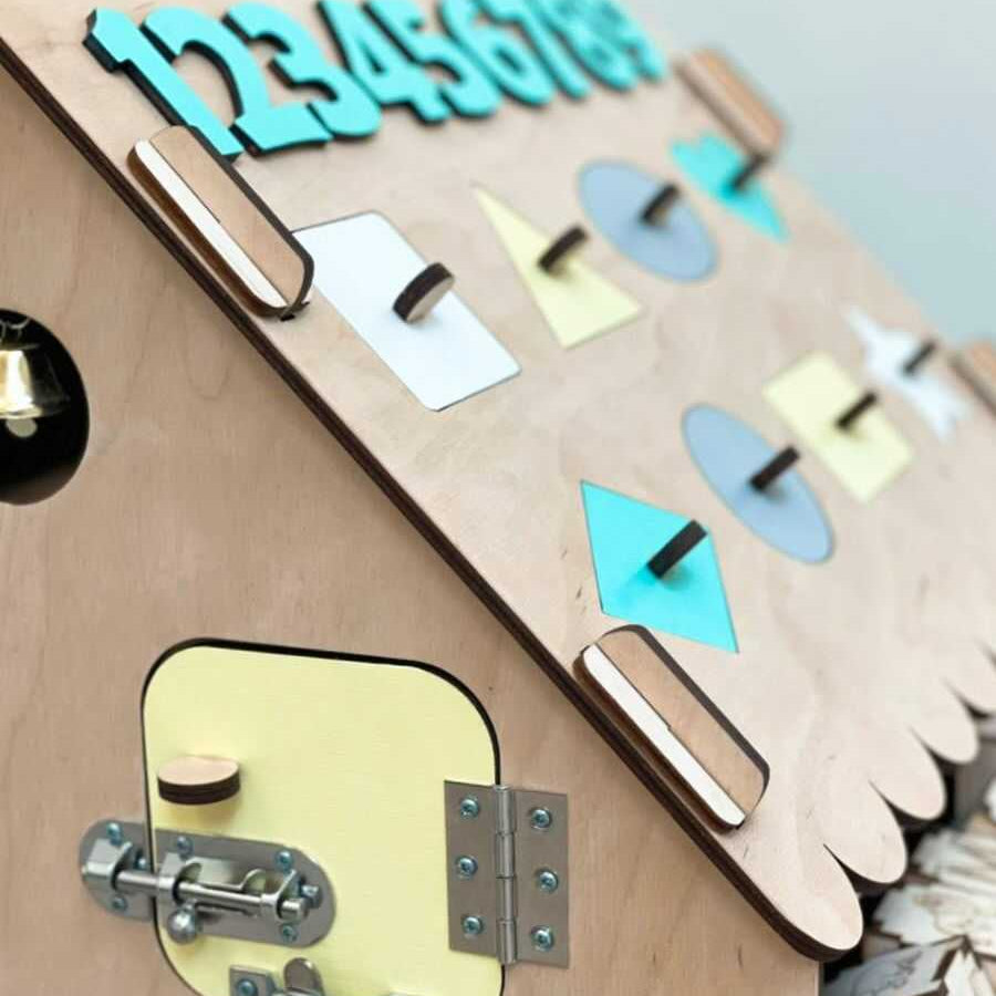 With the busy board house, children can play games on their own. This feature increases children's self-confidence and strengthens their sense of independence.