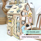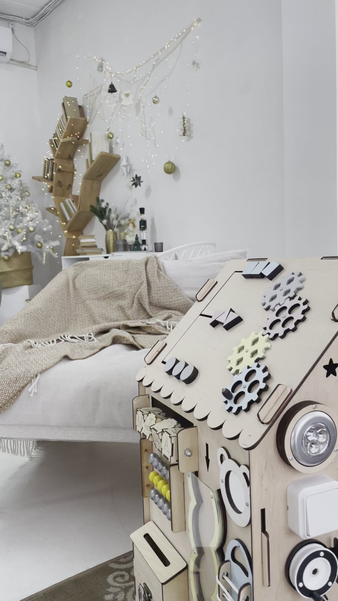Busy House is a training complex made according to Montessori approach  consists of 6 different busy boards and allows your children to easily develop their skills and creativity!