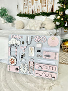 Busy board includes elements designed for different ages of child development. Some elements will be easy for one-year-olds while others aredesigned for children ages two and up. Thus, the toy “grows” with your child, since he/she always discovers something new!
