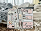 - Sensory ability (different busy board elements have diverse surfaces, textures, etc.)