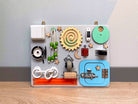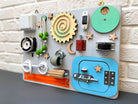 Busy board includes elements designed for different ages of child development. Some elements will be easy for one-year-olds while others aredesigned for children ages two and up. Thus, the toy “grows” with your child, since he/she always discovers something new!