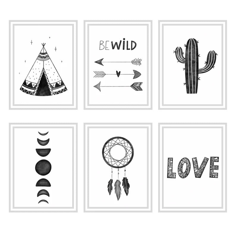 A GORGEOUS Monochrome Watercolor Nursery Decor in Scandinavian style