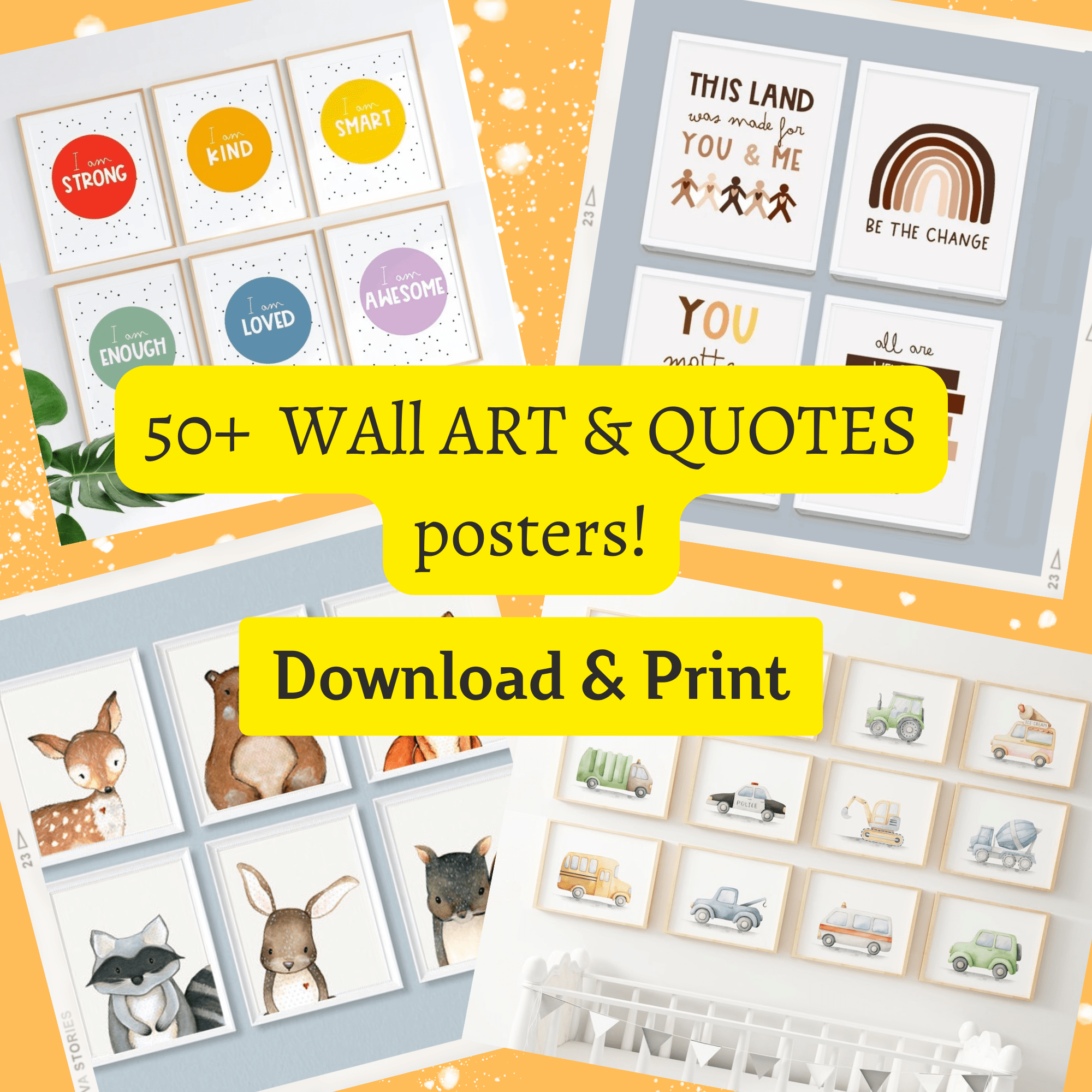 50+ Wall ART & Quotes posters for kids room .