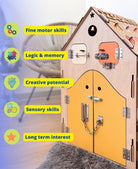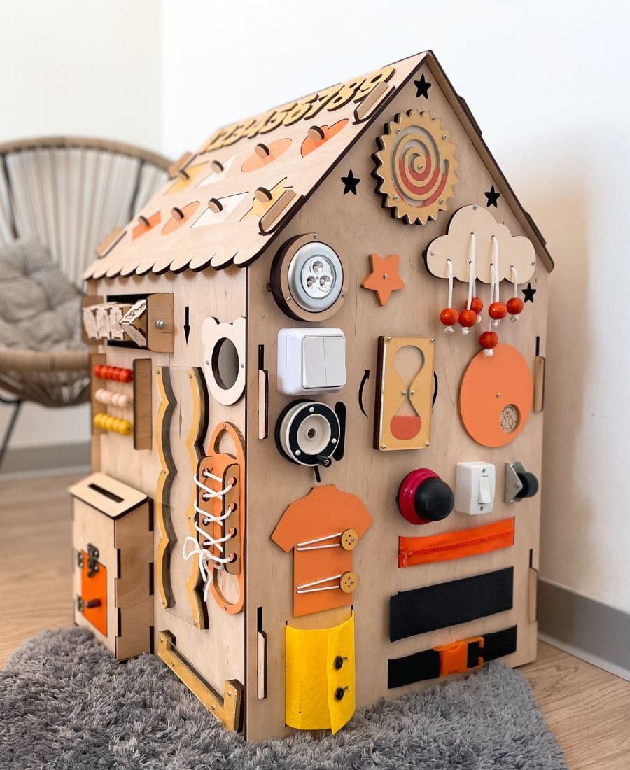 Busy House is a training complex made according to Montessori approach consists of 6 different busy boards and allows your children to easily develop their skills and creativity!