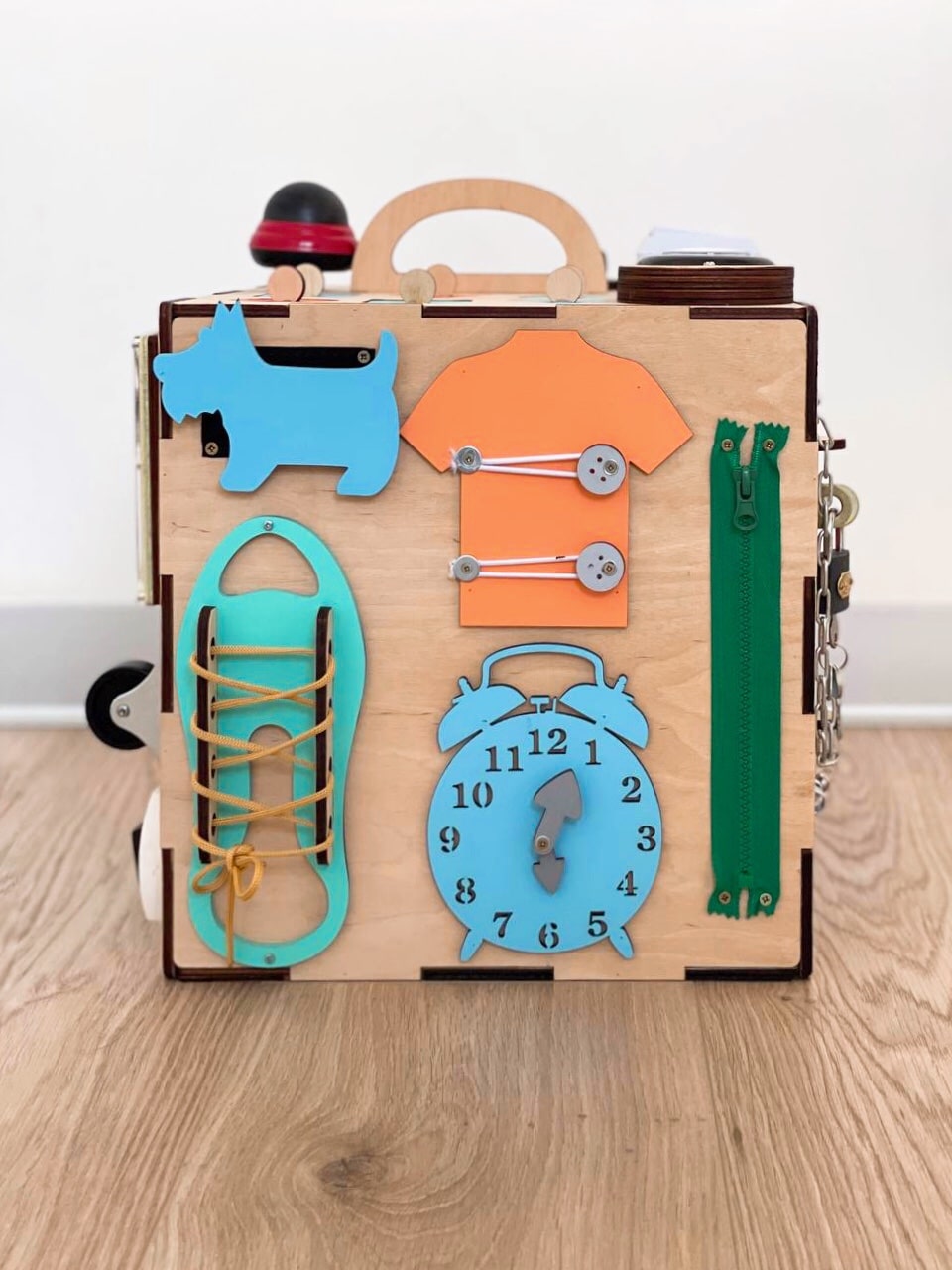 • All of the surfaces are carefully polished, and the corners are rounded. There are absolutely no sharp, cutting or other elements, that can be dangerous. Busy board is absolutely safe for your child.